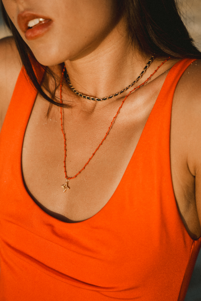 The Orbit Necklace features a sleek black leather band and our signature LIOR star charm – polished to perfection and designed to stand out. A bold contrast of softness and structure, it adds an effortless edge to your everyday look.