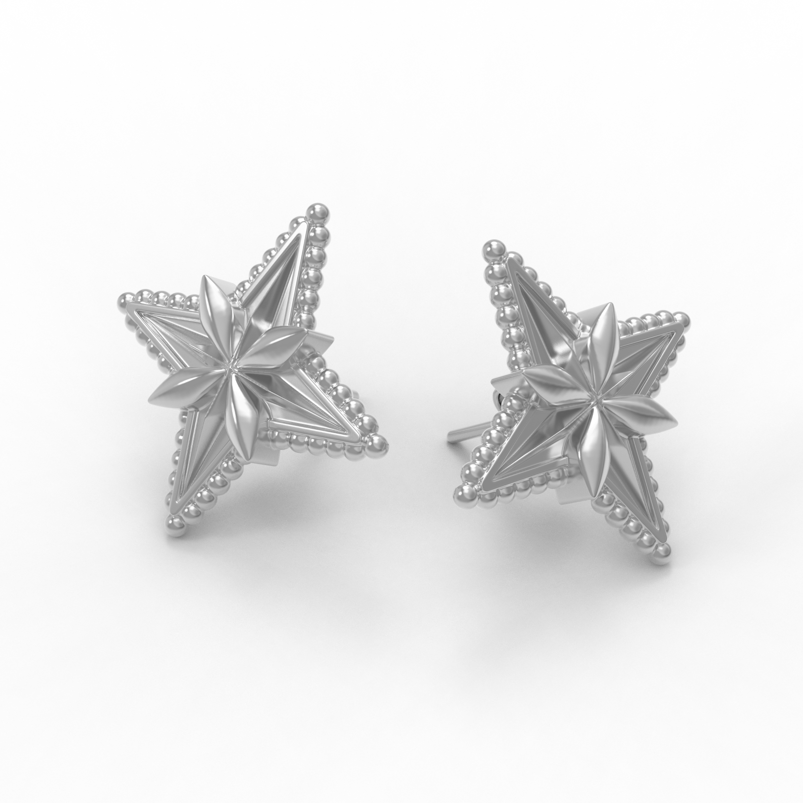 Celestial charm in its purest form. The Stellar Studs feature our signature eight-point star — a radiant fusion of geometry and grace. Sculpted with intricate detailing and a beaded contour, these studs anchor elegance in everyday wear.