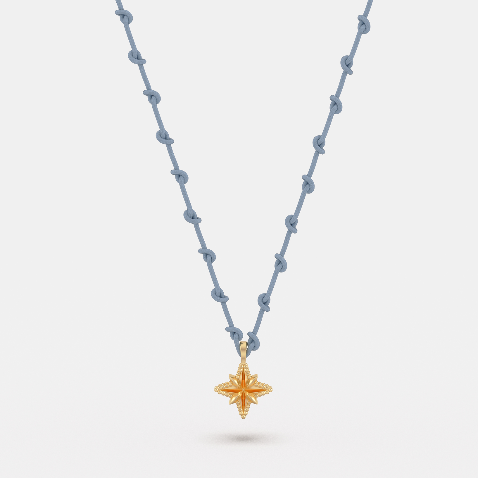 A radiant force in perfect symmetry. The Stellar Pendant features the LIOR star in its purest form – bold, sculpted, and encircled with delicate beading that reflects light from every direction. Its balanced geometry draws inspiration from ancient celestial maps, reimagined in a clean, modern silhouette.